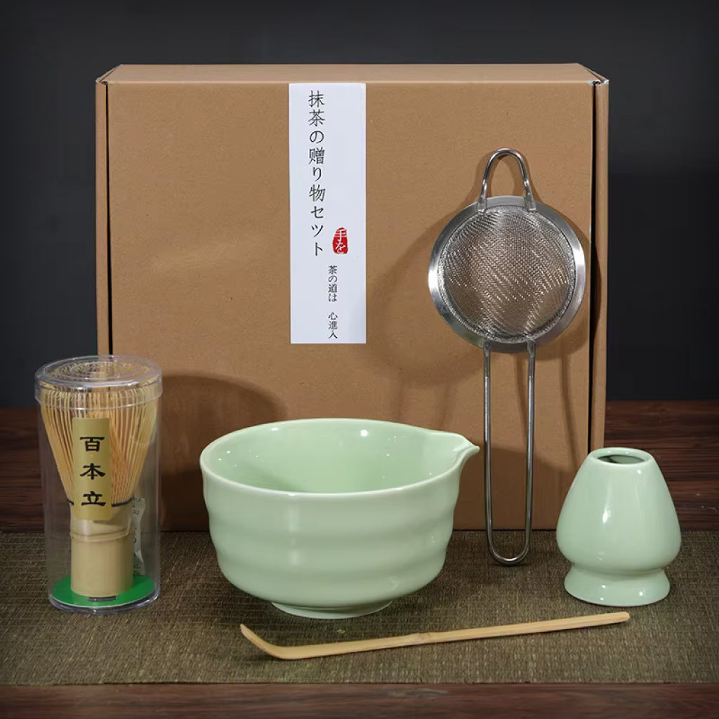 5-piece Matcha Tea Set (Bowl, Whisk, Stand, Scoop, Strainer)