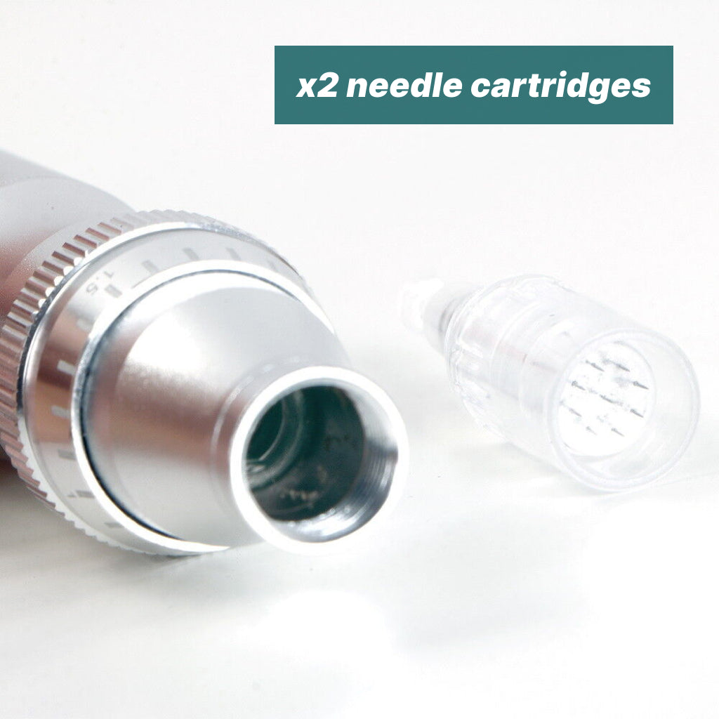 Derma Glow Dermapen • Electric rechargeable microneedling pen + spare battery and cartridges